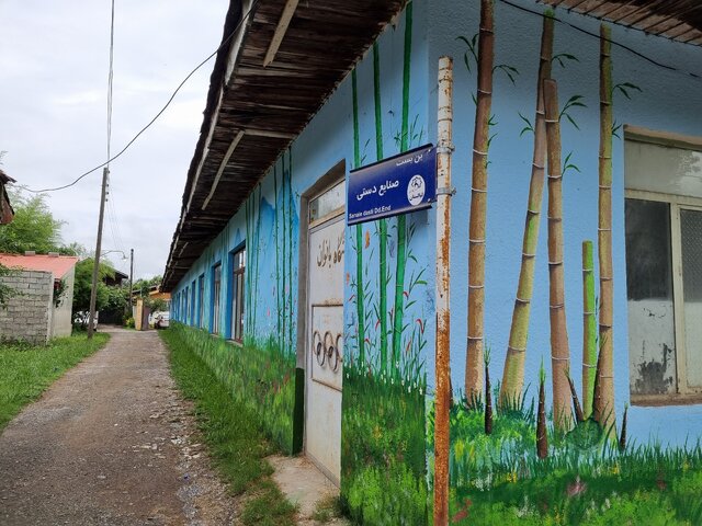 در ادامه مسیر، کانال آب را به سمت خیابانی می روم که بر تابلوی آن نام «بامبو» حک شده است. هرچه به مقصد نزدیک می شوم، بر تعداد رویشگاه های نی خیزران سبز رنگ افزوده می شود. نزدیک به بن بستی که به نام خانه صنایع دستی نامگذاری شده، مدرسه و باشگاهی است، که دیوارهای آن به تصاویر سبدهای بافته شده از بامبو و نی های بلند خیزران نقش بسته شده است.