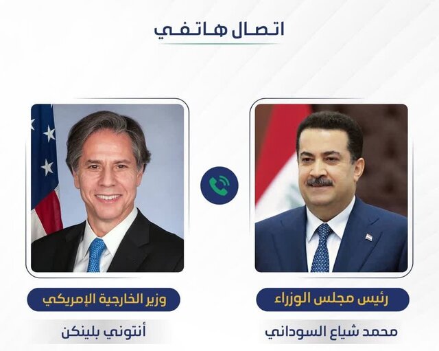 به گزارش ایسنا، «محمد شیاع السودانی» نخست وزیر عراق روز یکشنبه تماس تلفنی از «آنتونی بلینکن» وزیر خارجه آمریکا دریافت کرده است.