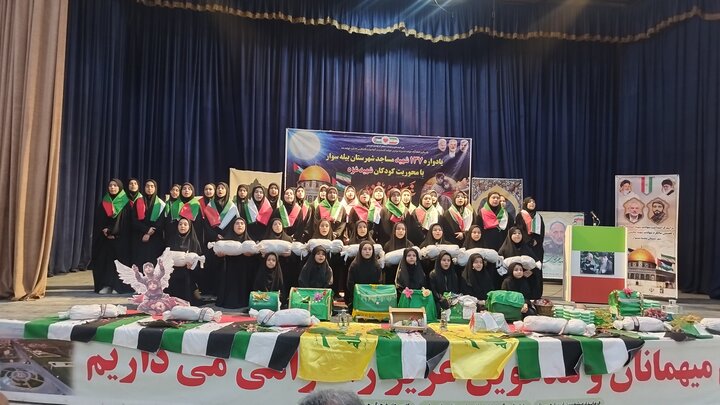 بیله سوار - اجرای سرود «لالایی کودک غزه» توسط گروه سرود شهرستان بیله سوار در مجتمع امام علی (ع) این شهرستان با محوریت کودکان شهید غزه برگزار شد.