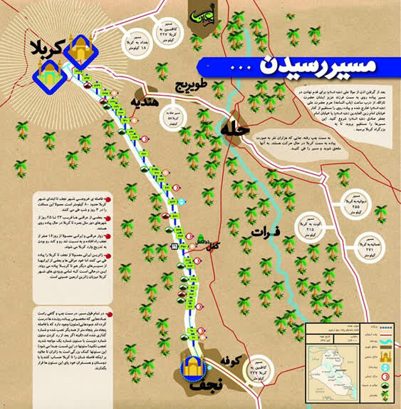 دکتر «حبیبالله محمودیان» محقق و پژوهشگر و نویسنده کتاب ارزشمند «زوایای ارزشی اربعین» در خصوص اینکه چرا اغلب زائران مرز مهران را برای تردد خود در ایلام اربعین انتخهاب میکنند به ایسنا گفت: شهر مرزی مهران در منتهیالیه غربی استان ایلام قرار دارد و فاصله آن تا شهر ایلام ۸۵ کیلومتر است. زائرانی که از این شهر وارد عراق میشوند پس از عبور از منطقه زرباطیه و شهر بدره وارد شهر کوت میشوند، در این مسیر پس از عبور از شهرهای نعمانیه، شوملی، دیوانیه و شامیه به شهر نجف میرسند. طول این مسیر از پاسگاه مرزی زرباطیه تا بازرسی ورودی نجف ۳۰۲ کیلومتر است.