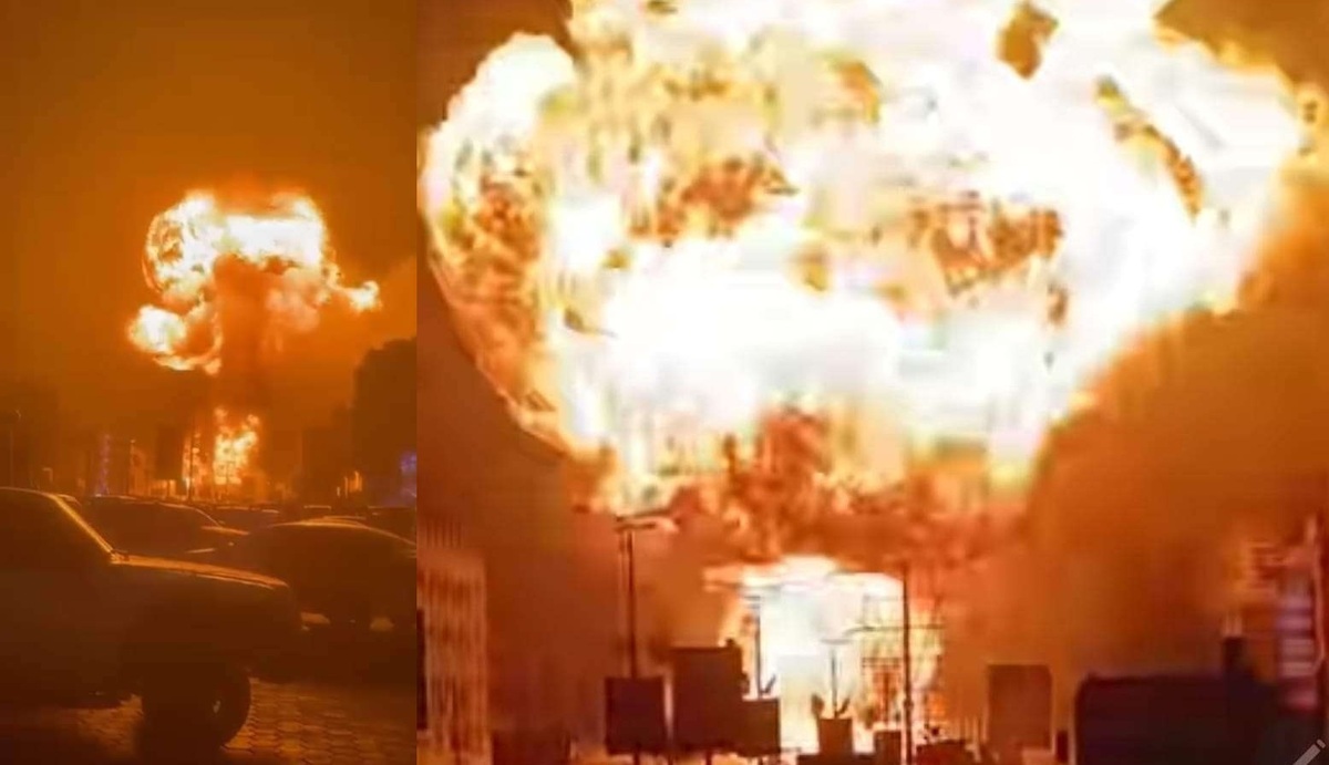 (ویدئو) انفجار مهیب در یک پمپ بنزین در شهر عدن