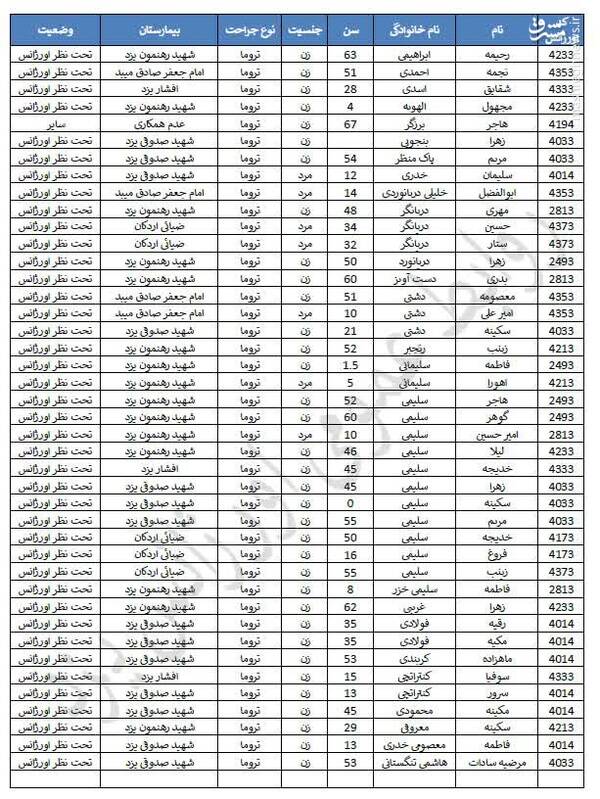 مصدومان به مراکز درمانی استان اعزام شدند که اسامی آنها از سوی اورژانس استان یزد اعلام شده است.