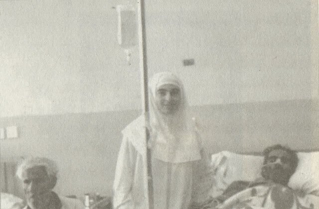 من اولین پرستاری بودم که قبل از انقلاب در محل کارم حجاب گذاشتم. در آن زمان پرستاران فرم خاصی داشتند و باید کلاه مانندی بر سر میگذاشتند اما من بعد از یک سال از این حرفه، مقنعه بر سر گذاشتم که این مسئله باعث نگرانی مسئولان شده بود و دائم دنبال این بودند که من را اخراج کنند اما ایستادگی کردم و اخراج نشدم چون هم درسم خوب بود و هم کارم. لکن در عین حال، اجازه ندادند در بیمارستان نمازی مشغول به فعالیت شوم و من را به بیمارستان قطبالدین که آن زمان بیمارستان کوچکی بود و تنها دو بخش اطفال و جراحی داشت، انتقال دادند. اغلب بیماران این بیمارستان مستضعف بودند که همین مسئله موجب شد تا توفیق یابم به عنوان کادر درمان به بیماران مستضعف خدمت کنم.