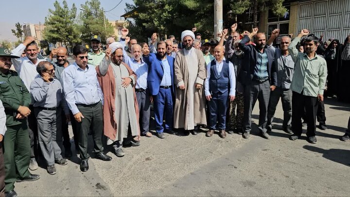 مردم همیشه درصحنه این شهرستان در حالی که پیشاپیش آنها امام جمعه، فرماندار، جمعی از مسئولین اجرایی و قضایی، نیروهای نظامی و انتظامی حضور داشتند با مشتهای گره کرده و فریادهای کوبنده مرگ بر اسرائیل و مرگ بر آمریکا در این راهپیمایی جنایات وحشیانه رژیم اشغالگر قدس را بشدت محکوم کرده و بر لزوم ایستادگی و مقاومت مردم لبنان و فلسطین تاکید کردند.