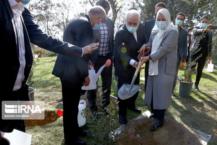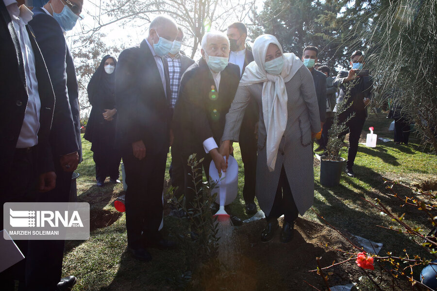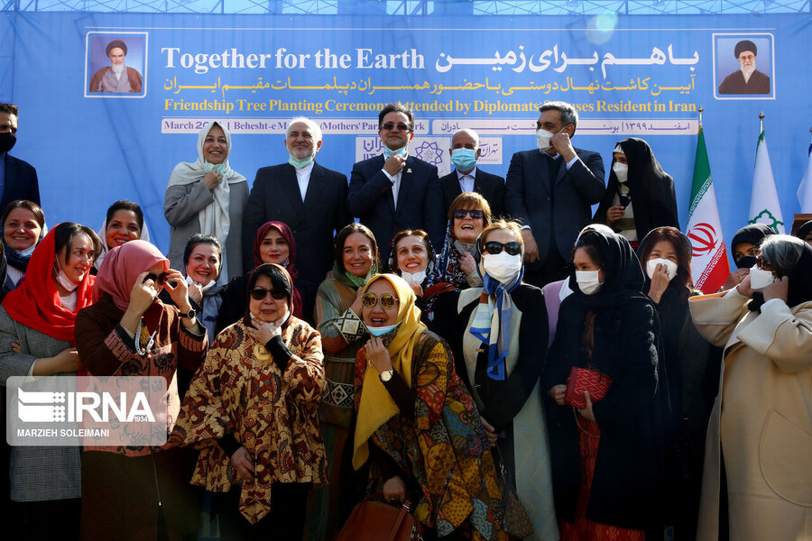مراسم کاشت نهال دوستی با عنوان«با هم برای زمین» عصر چهارشنبه با حضور محمدجواد ظریف وزیر امورخارجه و پیروز حناچی شهردار تهران و همسران دیپلمات های مقیم تهران در بوستان بهشت مادران برگزار شد.