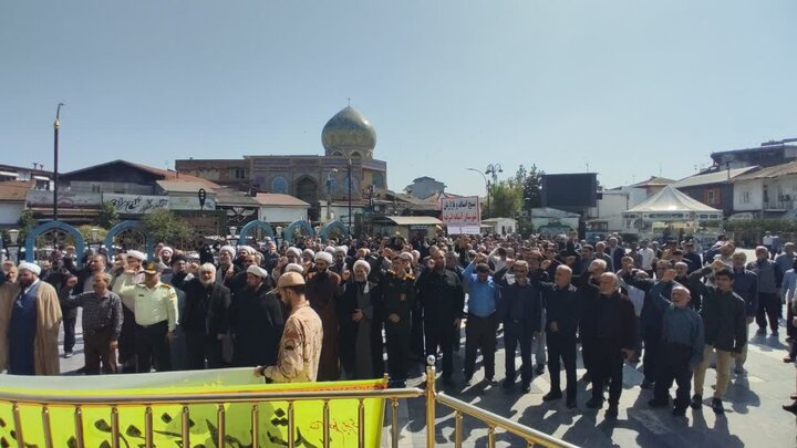 آستانه اشرفیه- مردم شهر آستانه اشرفیه در پی شهادت «سید حسن نصرالله» از مقابل کانون بسیج به سمت حرم مطهر سلطان سیدجلال الدین اشرف(ع) با راه اندازی هیئت عزاداری به سینه زنی پرداختند.