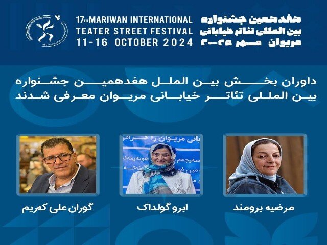 به گزارش خبرنگار مهر، دبیر هفدهمین جشنواره بینالمللی تئاتر خیابانی مریوان شامگاه جمعه به خبرنگاران رسانههای کردستان اعلام کرد: داوران این دوره از جشنواره برای ارزیابی شرکت کنندگان معرفی شدند.