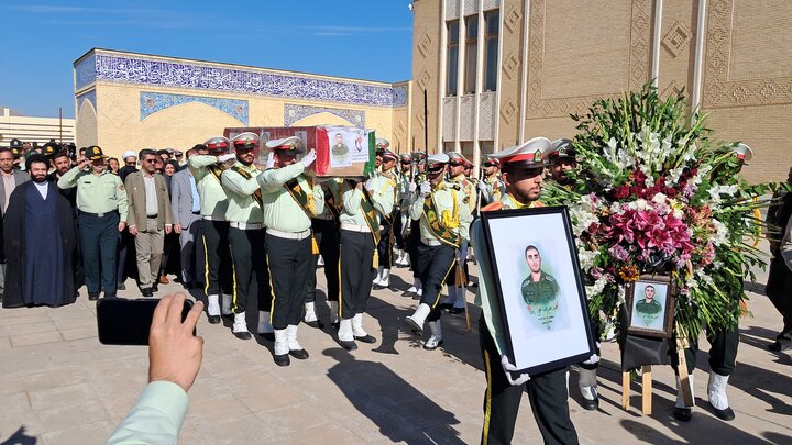 شیراز-آئین تشییع شهید حمله تروریستی تفتان با حضور خانواده شهید، فرماندهان نظامی فارس و مردم شیراز در حرم شاهچراغ (ع) برگزار شد.