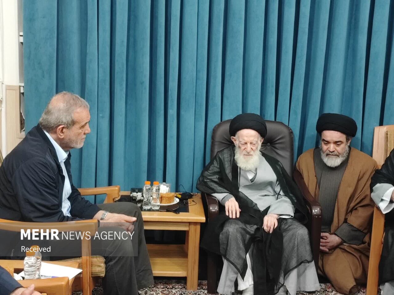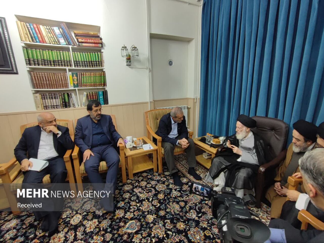 به گزارش خبرنگار مهر، «مسعود پزشکیان» که صبح روز پنجشنبه به شهر مقدس قم سفر کرده، با حضور در بیت آیت الله شبیری زنجانی با این مرجع تقلید شیعیان دیدار و گفتوگو کرد.