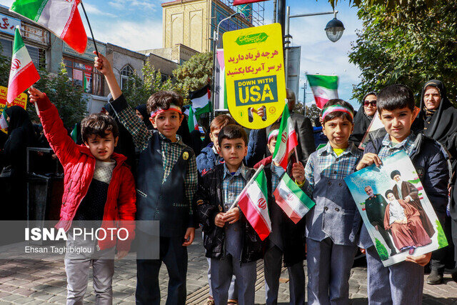 همزمان با سراسر کشور، دانش آموزان اردبیلی هم با سر دادن شعارهای «مرگ بر آمریکا» و «مرگ بر اسرائیل» به استقبال ۱۳ آبان رفتند.