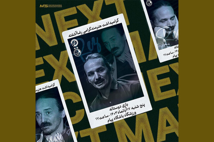 به گزارش خبرگزاری مهر به نقل از روابط عمومی رویداد، یک مسابقه دوستانه فوتبال بین تیم های پیشکسوتان استقلال و هنرمندان پاسارگاد ساعت ۱۷ روز پنجشنبه ۱۷ آبان در باشگاه پیام برگزار می شود که برای گرامیداشت رضا آشفته منتقد تئاتر است.
