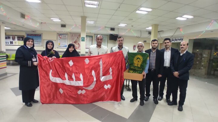 آستانه اشرفیه- همزمان با ولادت حضرت زینب(س) و روز پرستار خادمیاران کانون خدمت رضوی آستانه اشرفیه با پرچم متبرک سلطان سید جلال الدین اشرف و حضرت زینب (س) در بیمارستان کوثر حضور یافتند.