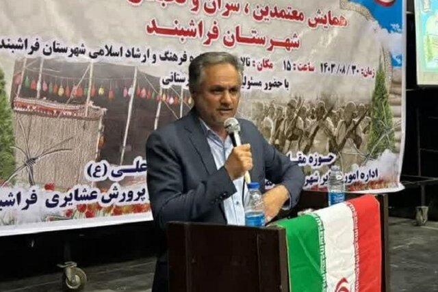 فرماندار فراشبند بیان کرد: بخشی از این رشادتها مرهون دلاورمردیهای جامعه عشایری است که از ۱۰۰ سال گذشته تاکنون دشمن از دلاوری، میهن دوستی و به تعبیر مقام معظم رهبری وفاداری عشایر غیور ترس و هراس دارند.