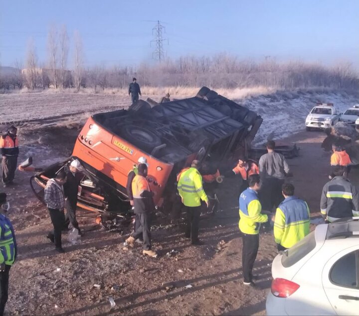 وی خاطر نشان کرد: این اتوبوس که از مبدا تهران به مقصد سقز در حال حرکت بود که به علت عدم توانایی راننده در کنترل وسیله نقلیه ناشی از تخطی از سرعت مطمئنه واژگون شد.