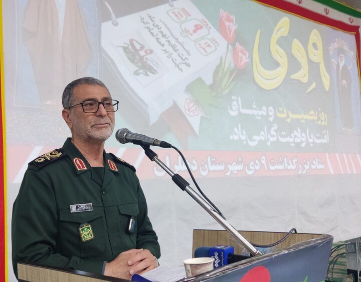فرمانده سپاه امیرالمومنین (ع) استان ایلام با اشاره به تلاش دشمنان و معاندان برای فراهم کردن انقلاب رنگی در جمهوری اسلامی، بیان کرد: روز نهم دی ماه تاریخیترین روز دفاع ملت از دموکراسی و نظام اسلامی است، نهم دی به عنوان روز بصیرت و میثاق با ولایت در تاریخ ماندگار شد چرا که در این روز، مردم به صورت خودجوش در مقابل فتنه گران و معاندان نظام ایستادند.