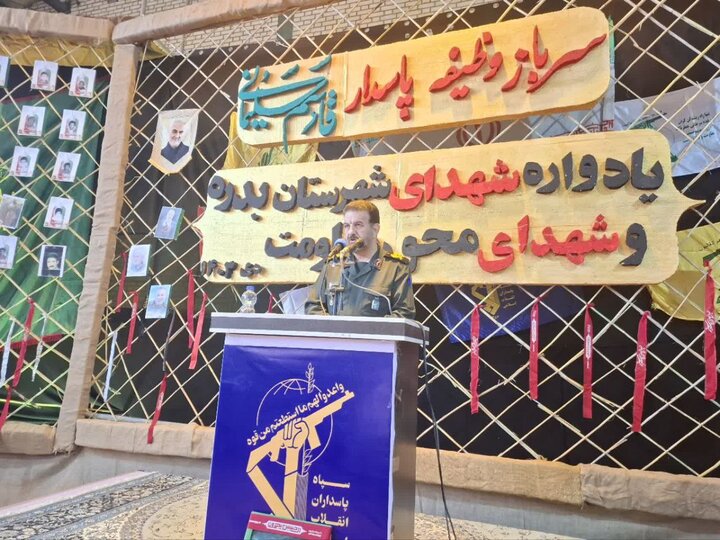 به گزارش خبرنگار مهر، سردار قدرت کریمیان صبح امروز در یادواره شهید سلیمانی و شهدای مقاومت که با حضور مسئولان شهرستانی و جمع کثیری از مردم غیور و همیشه در صحنه شهرستان بدره برگزار شد، اظهار کرد: شهید حاجقاسم سلیمانی در دفاع مقدس و در مقاطع حساس تاریخ انقلاب اسلامی ماندگار شد و ویژگیهایی را به همراه داشت که او را در یادها ماندگار کرد. شهید سلیمانی چهرهای بینظیر و نفوذ کلام بود که جاذبههای فراوانی داشت. نگاه نافذ او برگرفته از ایمان و اعتقاد قلبیاش بود.