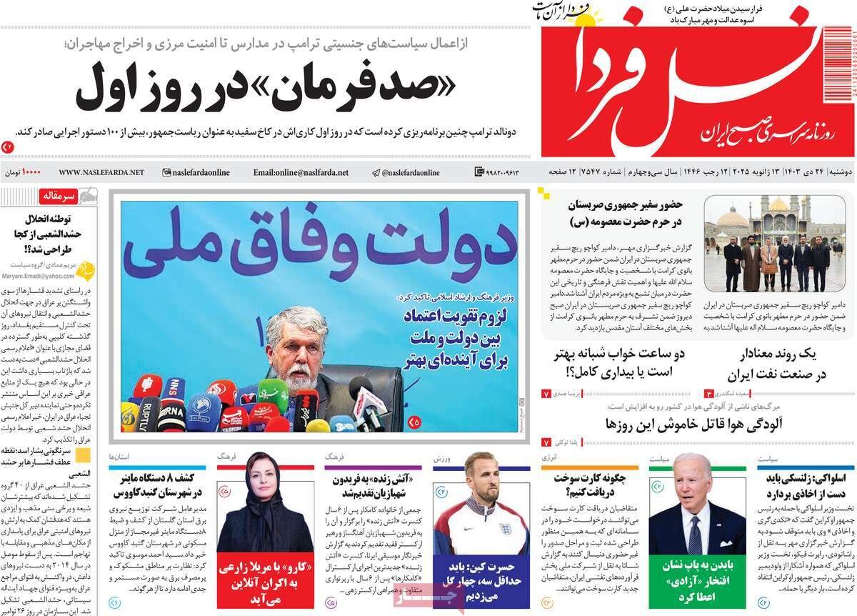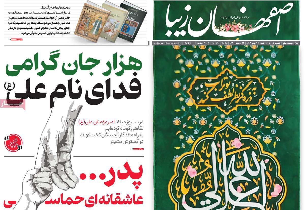 صفحه اول روزنامه‌های اصفهان دوشنبه ۲۴ دی ماه