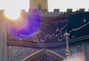 در آستانه سالروز شهادت امام موسی بن جعفر علیه السلام پرچم گنبد مطهر رضوی و کتیبه ایوان طلا تعویض شد.