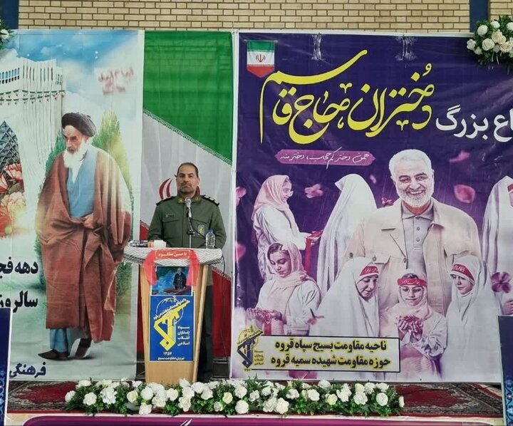 فرمانده ناحیه مقاومت سپاه شهرستان قروه اذعان کرد: در این میدان مقاومت و ایستادگی باید باشد و دانش آموزان با حمله به دشمن با سلاح حجاب، عفت و پاکدامنی که مهمترین سلاح و دستاورد انقلاب و حاج قاسم است از انقلاب حفاظت کنند.