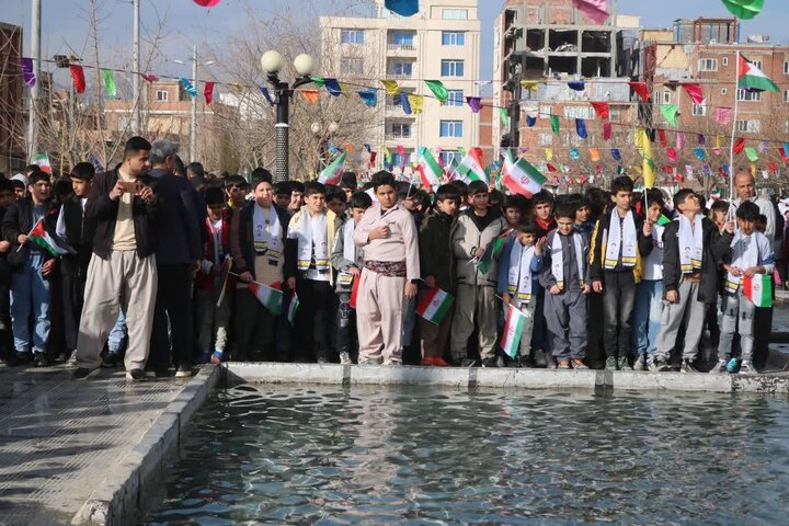 مریوان- اجتماع عظیم ندای انقلاب به مناسبت دهه مبارکه فجر و چهل و ششمین سالگرد پیروزی شکوهمند انقلاب اسلامی باحضور بیش از ۴۶۰۰ دانش آموز مریوانی در پارک شانو مریوان برگزار شد.