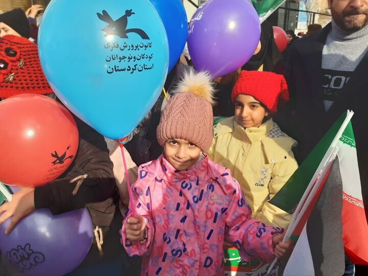 وی افزود: در این غرفه که به مناسبت گرامیداشت چهل و ششمین سالگرد پیروزی انقلاب اسلامی در حاشیه راهپیمایی شهر سنندج برگزار شد، نمایش بچههای ایران کاری از کانون پرورش فکری به اجرا درآمد.