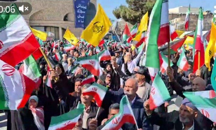 مردم روزه دار دیار آفتاب آمدهاند تا فریاد مظلومیت خواهی را در دفاع از مظلومان فلسطین سر دهند و بار دیگر به اسرائیل غاصب بفهمانند فلسطین تنها نیست.
