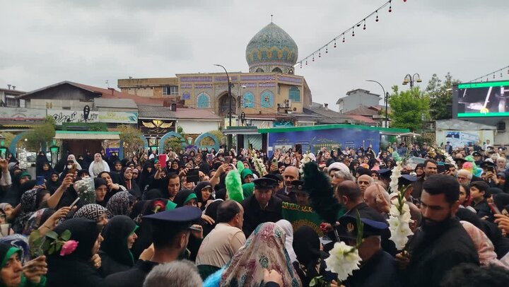 آستانه اشرفیه- همزمان با دهه کرامت با ورود کاروان «زیر سایه خورشید» حامل بیرق حرم مطهر رضوی شمیم عطر رضوی در آستانه اشرفیه پیچید.