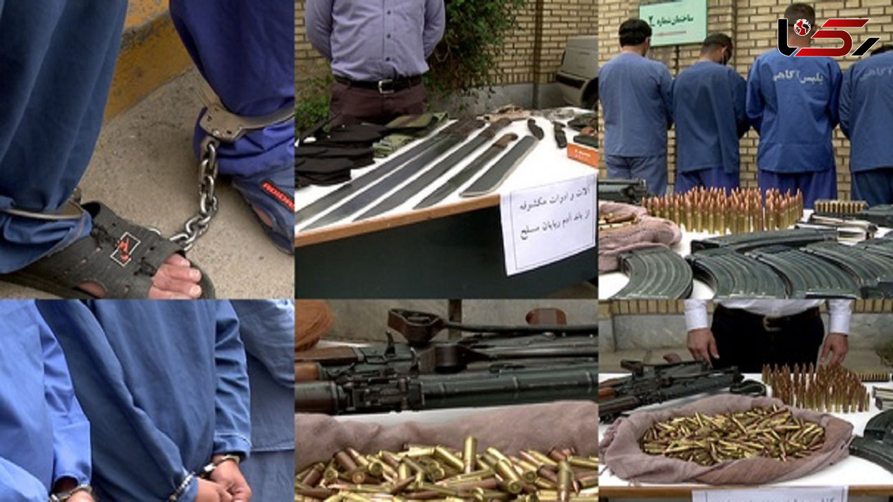 او افزود: دو قبضه اسلحه کلاشینکف، یک قبضه کلت کمری، تعدادی اسلحه سرد مانند قمه و چاقو و لباسهای مبدل مورد استفاده آنها کشف شد.