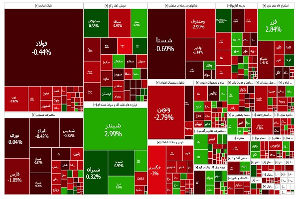از میان نمادهای اثرگذار بر شاخص کل، نماد شپنا با اثر مثبت بیش از ۱۸۰۰ واحدی و شبندر با حدود ۱۳۰۰ واحد نقش مهمی در جلوگیری از افت بیشتر شاخص داشتند. این در حالی است که فارس، به عنوان یکی از نمادهای بزرگ گروه پتروشیمی، بیشترین فشار منفی را وارد کرد و با کاهش قابل توجه خود، بیش از ۱۲۸۰ واحد شاخص را به عقب راند. همچنین نمادهایی همچون وصندوق، فولاد، وغدیر و اخابر نیز از جمله نمادهای منفی اثرگذار در بازار بودند.