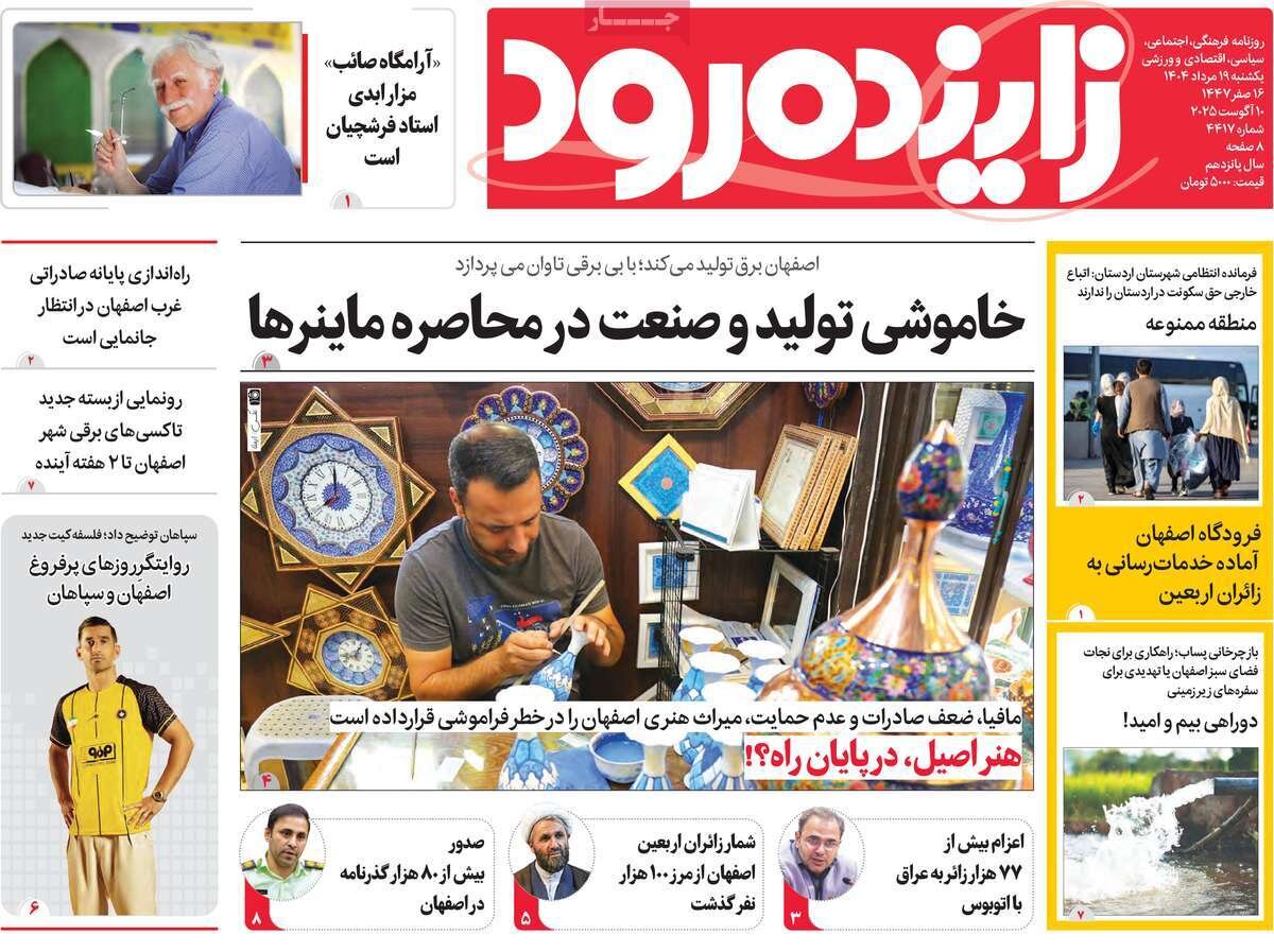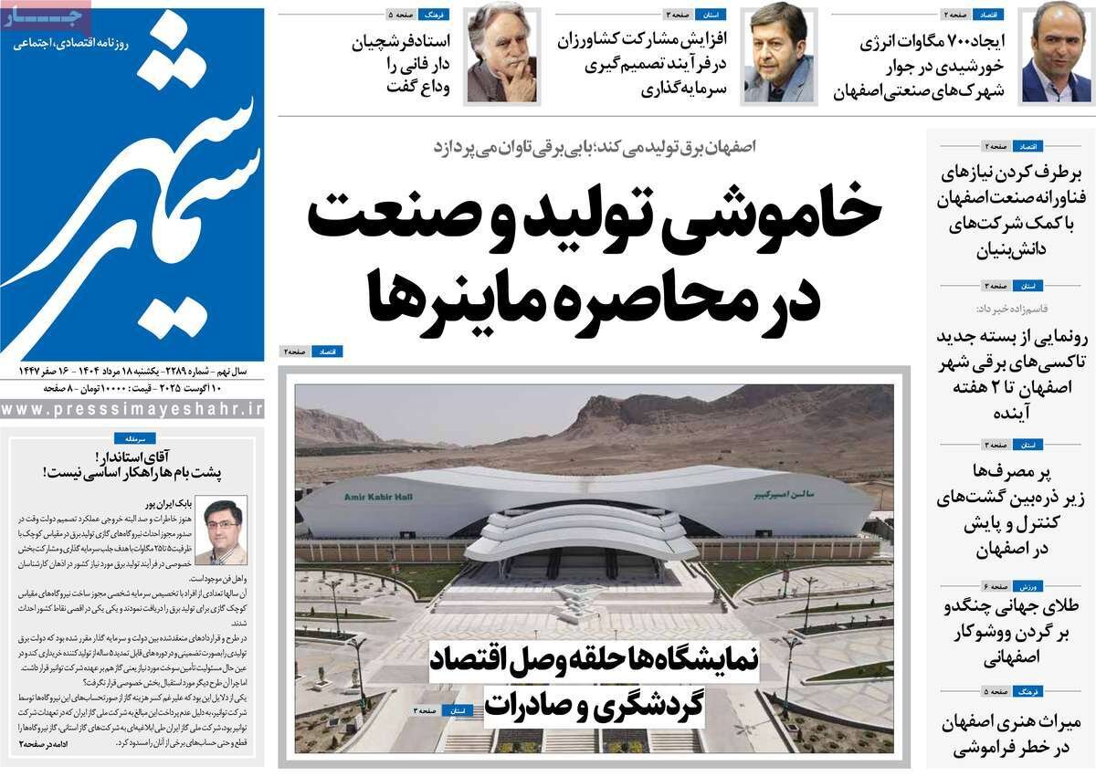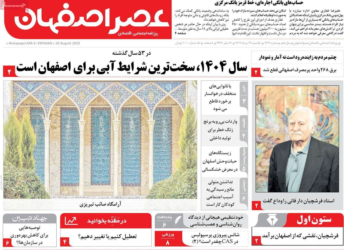 صفحه نخست روزنامه‌های اصفهان یکشنبه ۱۹ مرداد