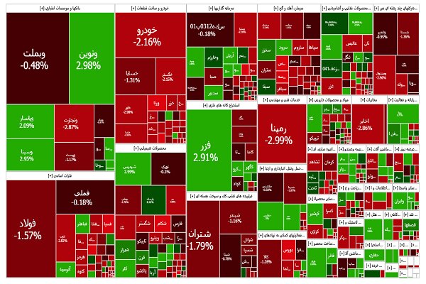 از نظر معاملات، فزر با ارزش ۱,۰۷۷ میلیارد ریال، رپویا با ۱۹۹ میلیارد ریال و صنایع غذایی رضوی (نان) در شمار پرگردشترین نمادها بودند.