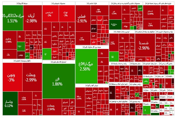 فارس با اثر منفی ۶ هزار و ۶۰۷ واحدی، فملی با منفی ۵ هزار و ۵۵۰ واحد و فولاد با منفی ۳ هزار و ۳۷۰ واحد بیشترین نقش را در افت شاخص داشتند.