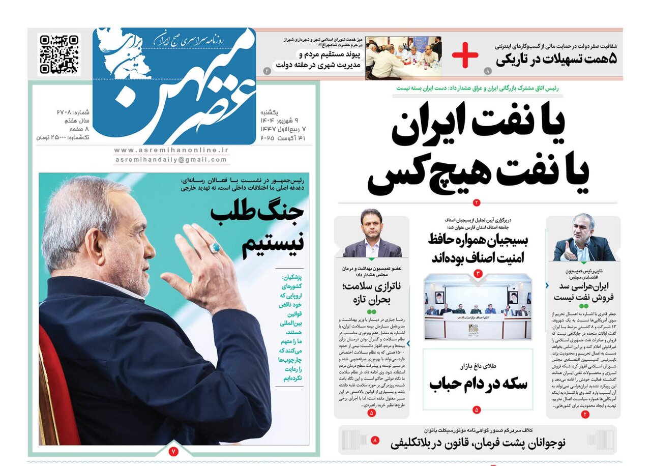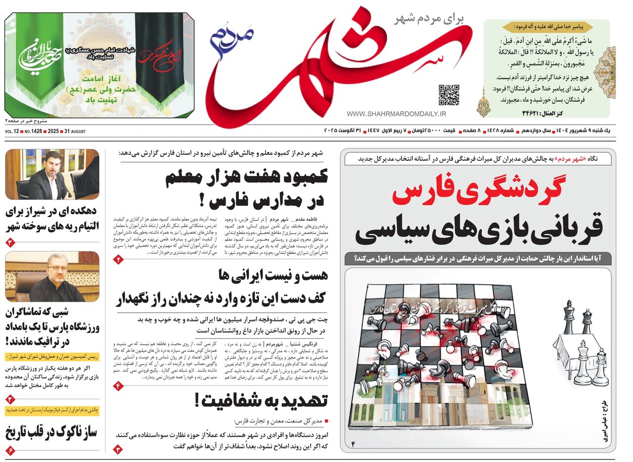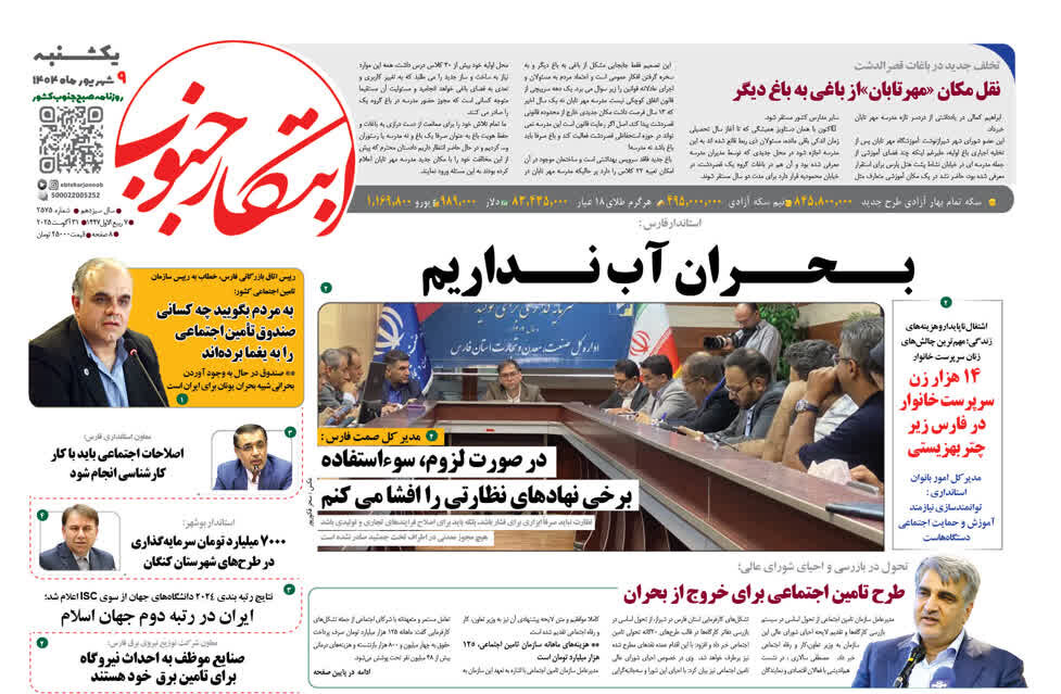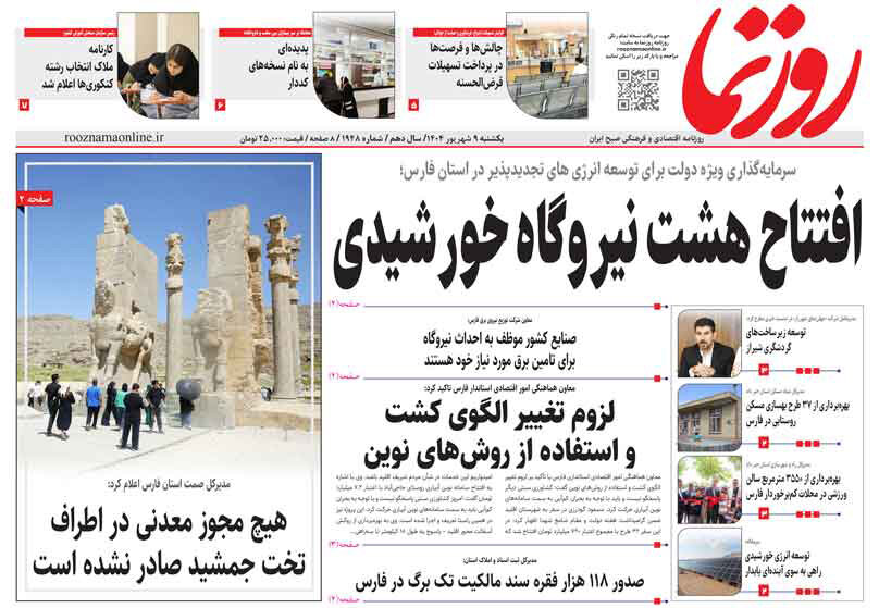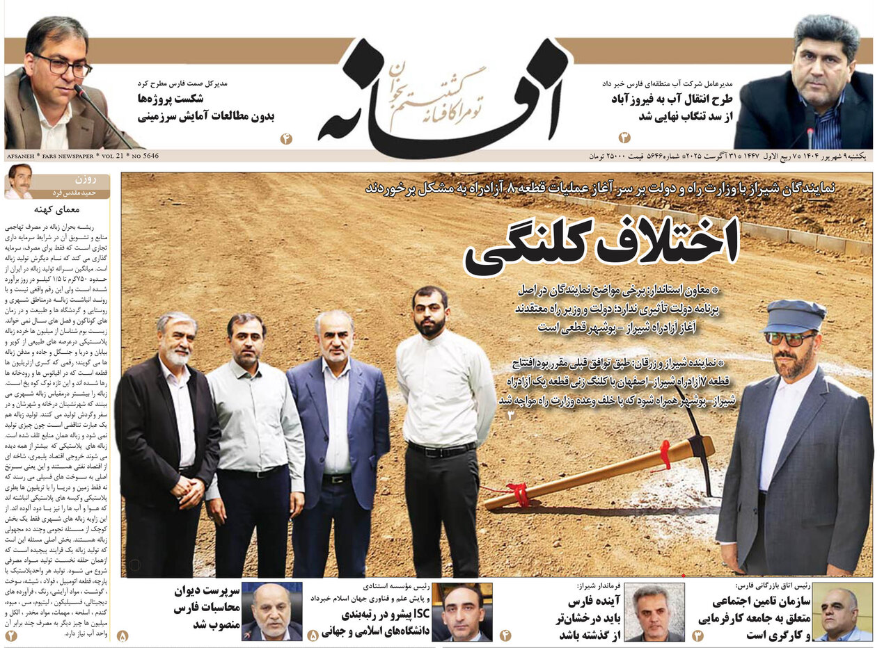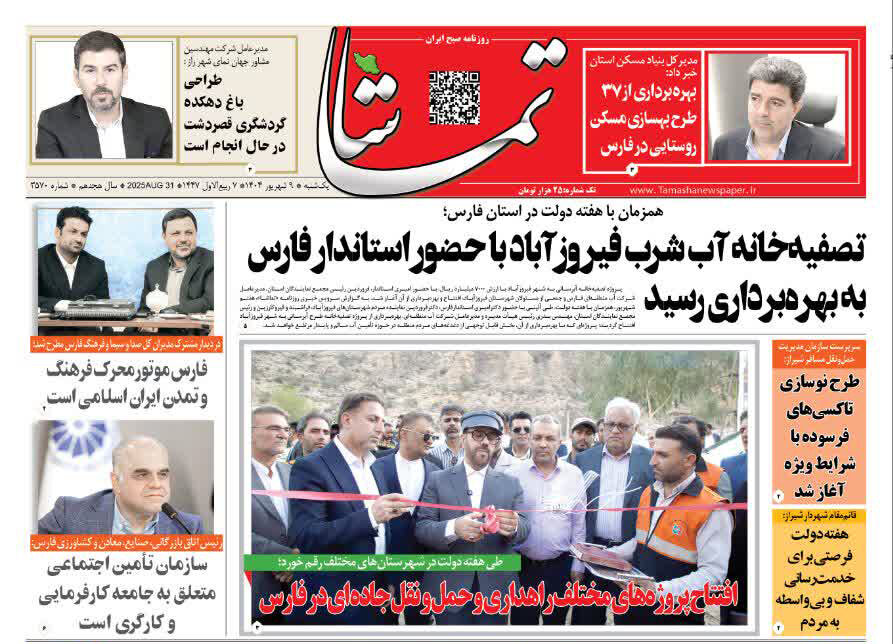 صفحه نخست روزنامه های استان فارس یکشنبه ۹ شهریورماه