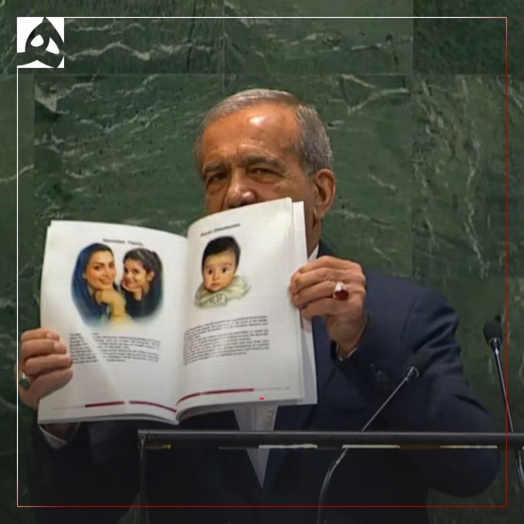پزشکیان، رئیس جمهور با تصویر کودکان شهید ایرانی در تجاوز اسرائیل به سازمان ملل رفت.
