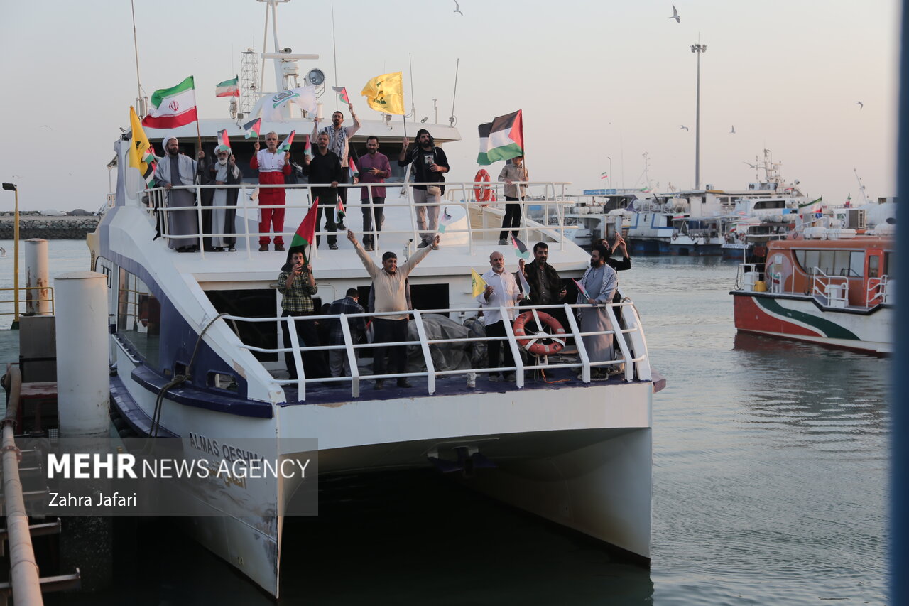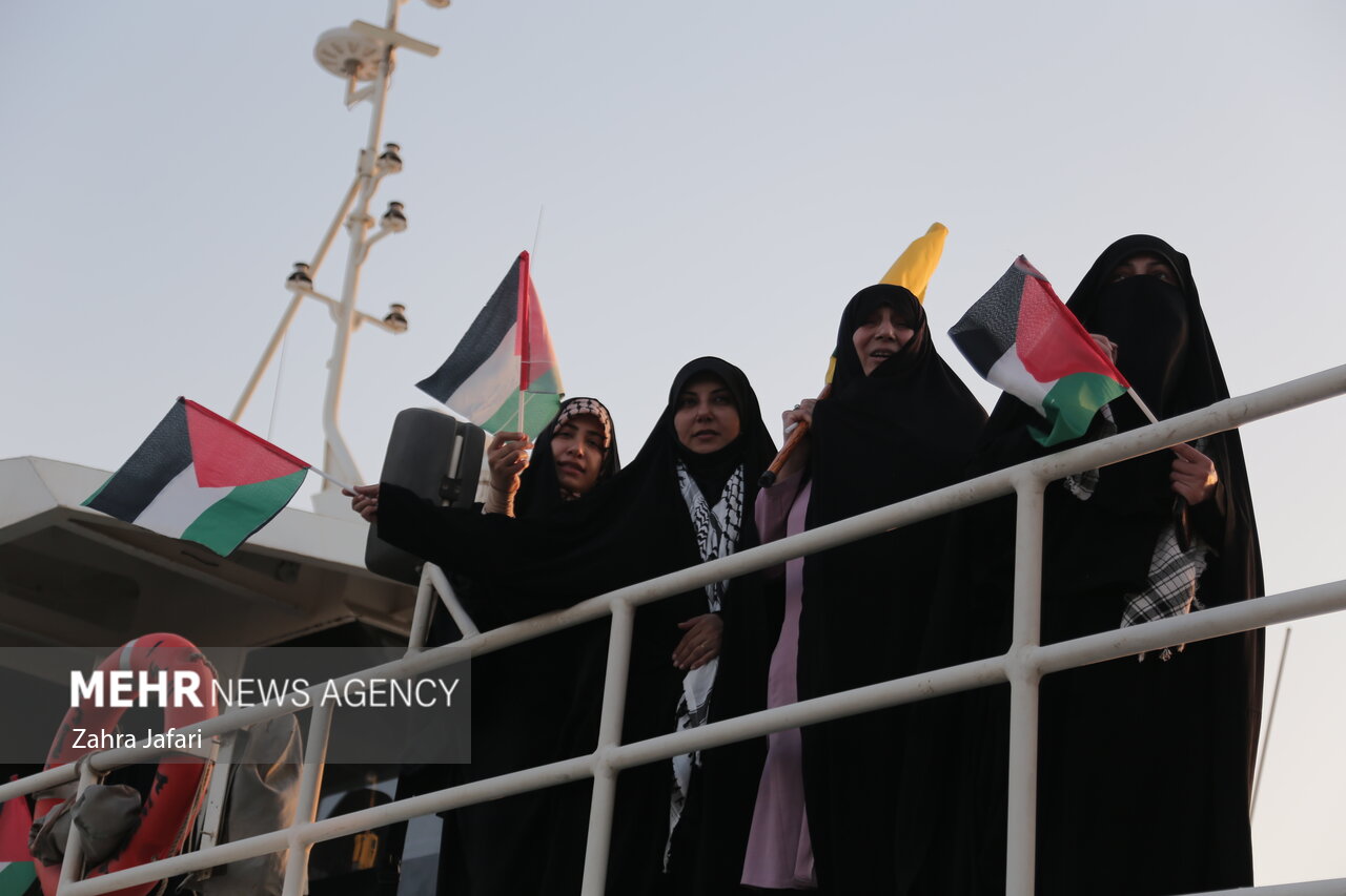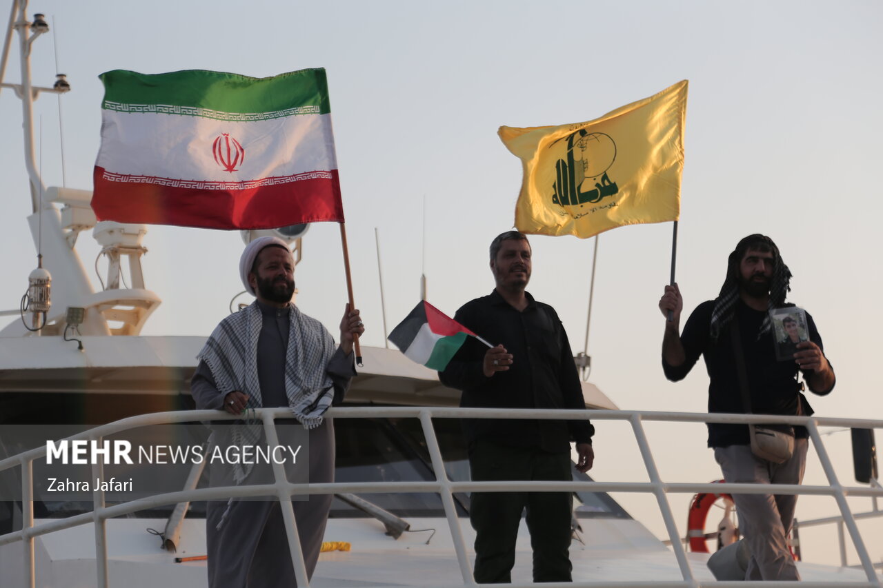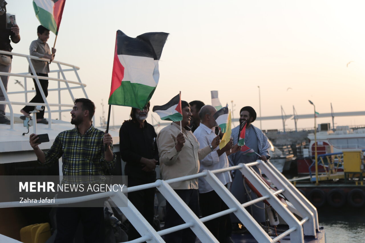 کاروان زمینی یاران صمود بعد از سفر به ۳۳ شهر از بندرعباس راهی آبهای آزاد شد و سفر دریایی خود را آغاز کرد.