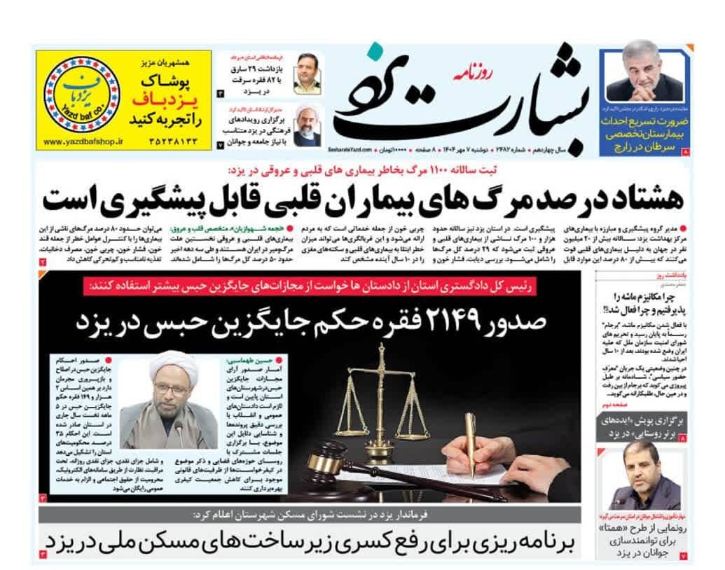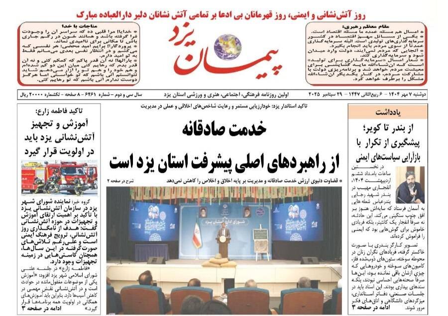 صفحه نخست روزنامه های استان یزد دوشنبه ۷ مهر