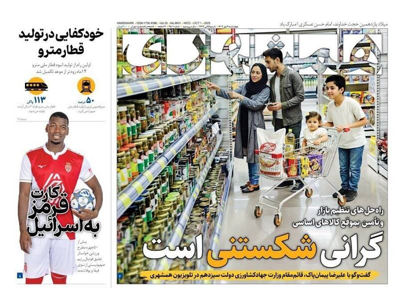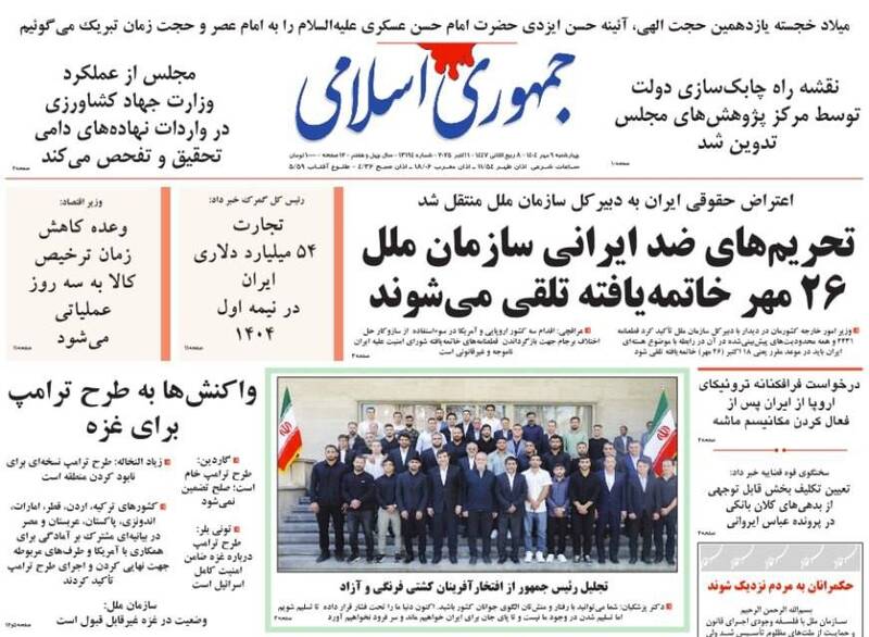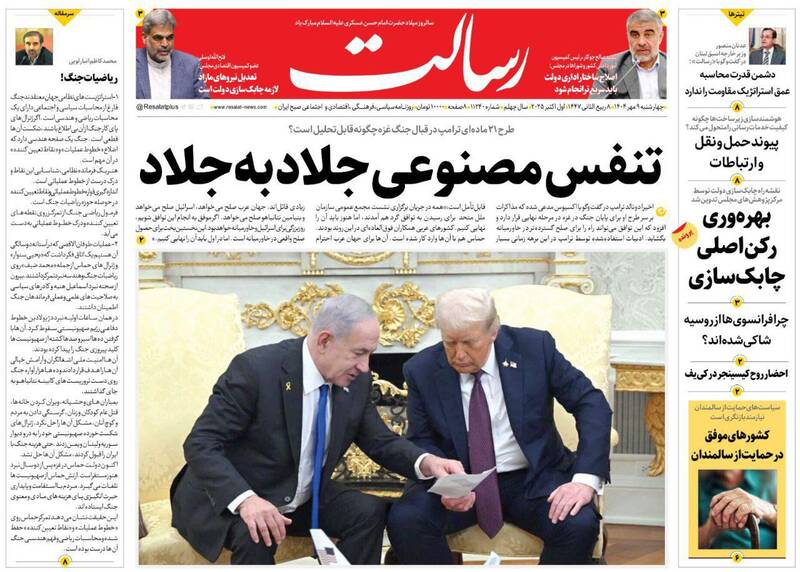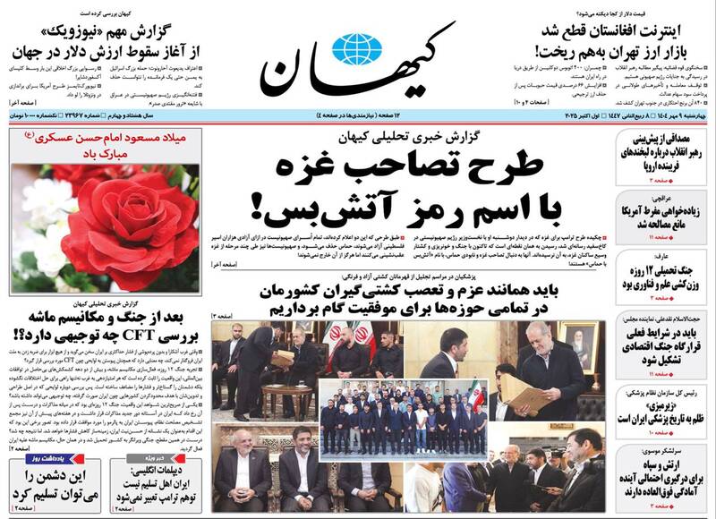طرح تصاحب غزه با اسم رمز آتش بس، بدتر از ماشه، شرق حرف آخر را زد، آپارتاید ابدی، گرانی شکستنی است، استعمار نوین و...از جمله تیترهای روزنامههای چهارشنبه ۹ مهر هستند.