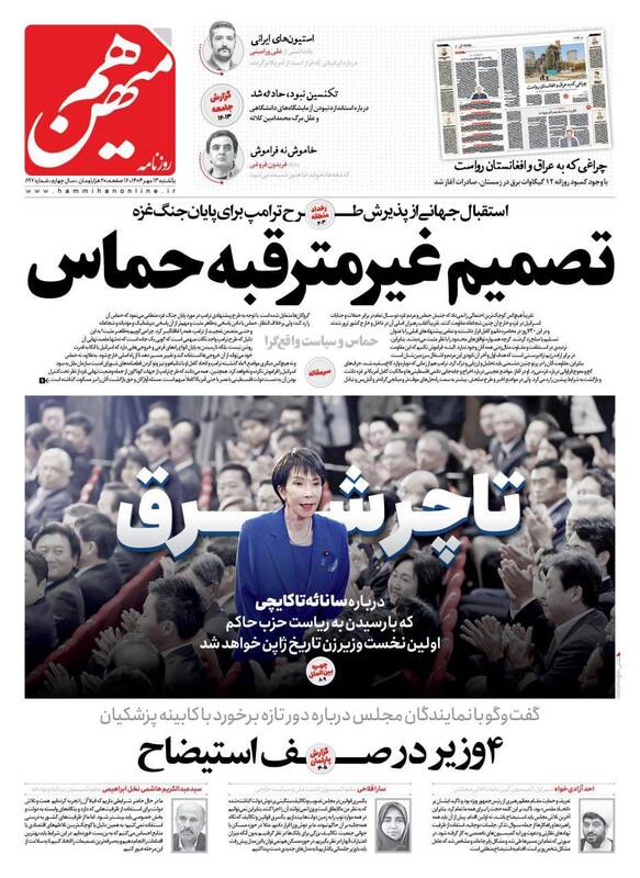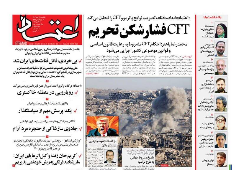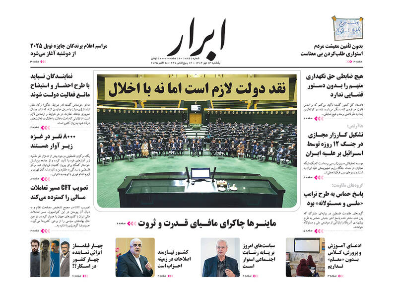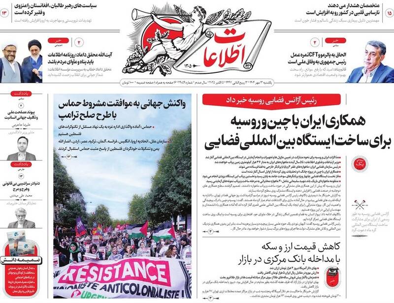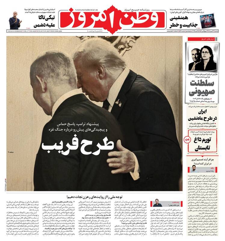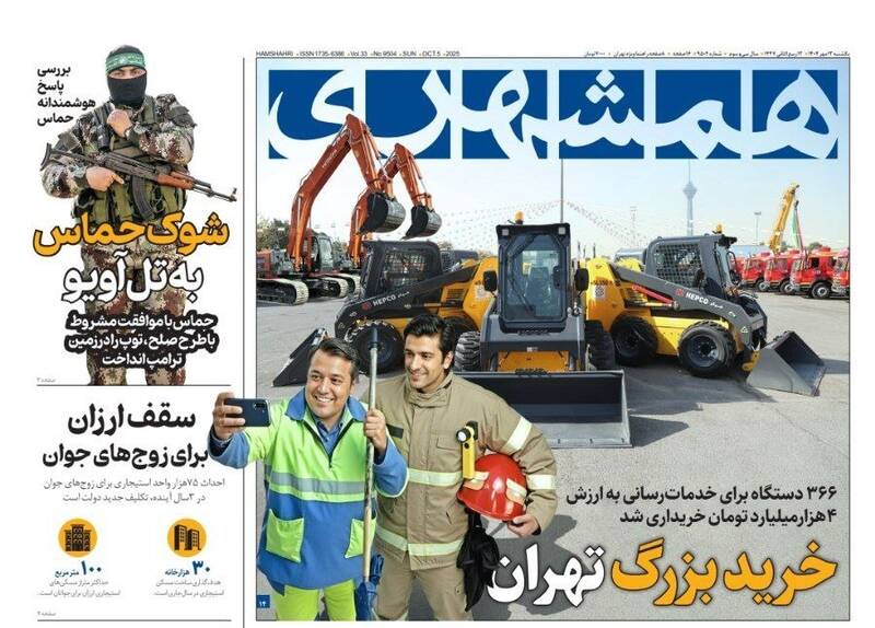 اختیار دارید برای فرار از کم کاری بهانه نیاورید، نه هوشمندانه به اشغالگری، طرح فریب، خرید بزرگ تهران، در روایت قاسم مبالغه نکردیم و...از جمله تیترهای روزنامههای یکشنبه ۱۳ مهر هستند.