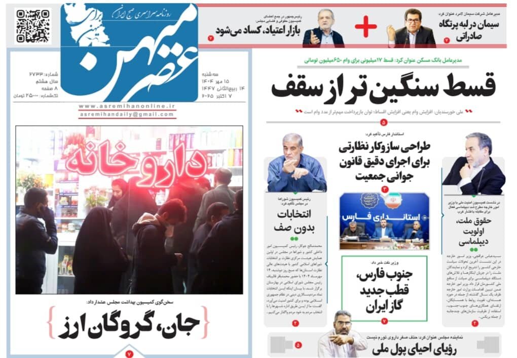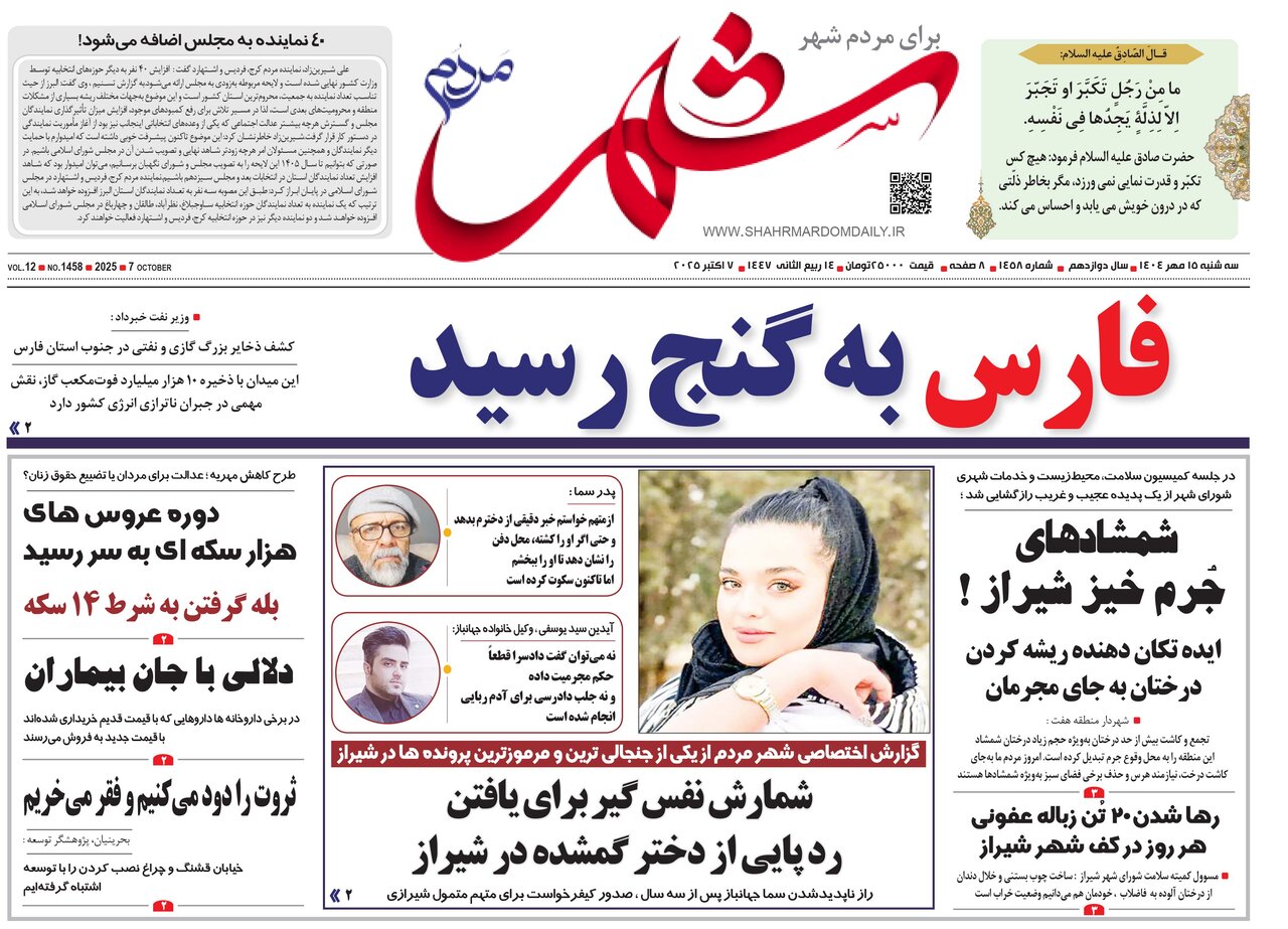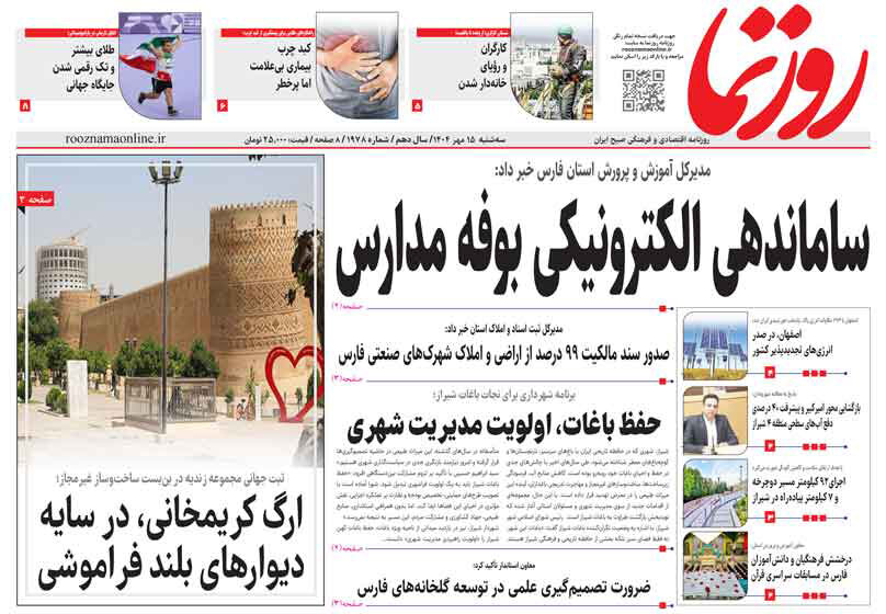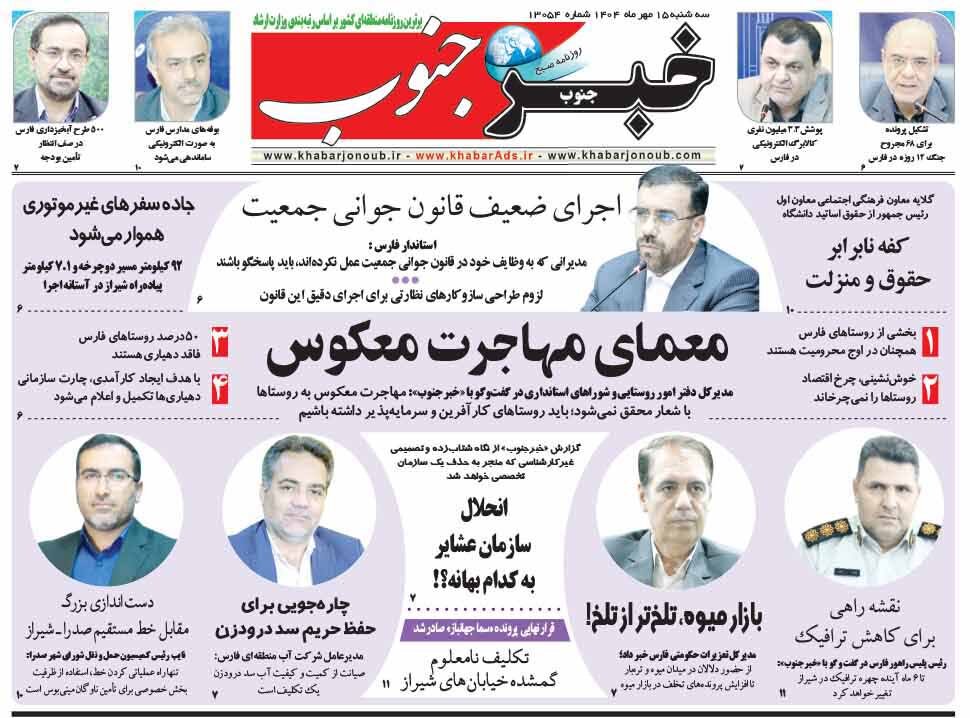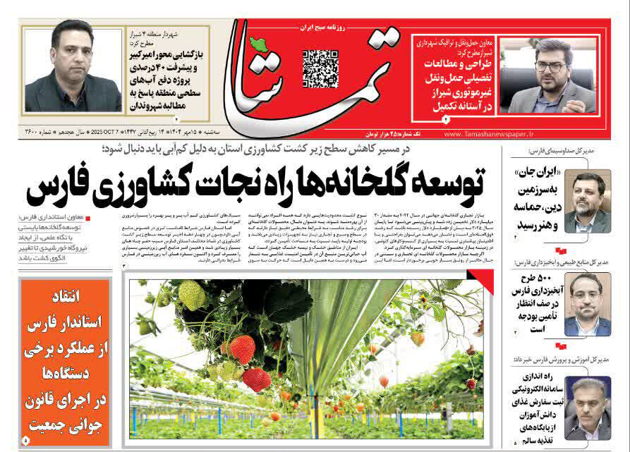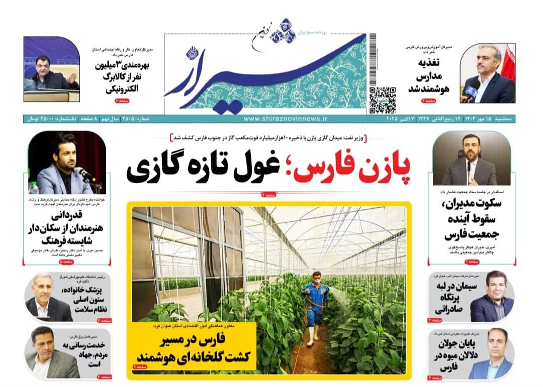 صفحه نخست روزنامه های استان فارس سه شنبه ۱۵ مهرماه