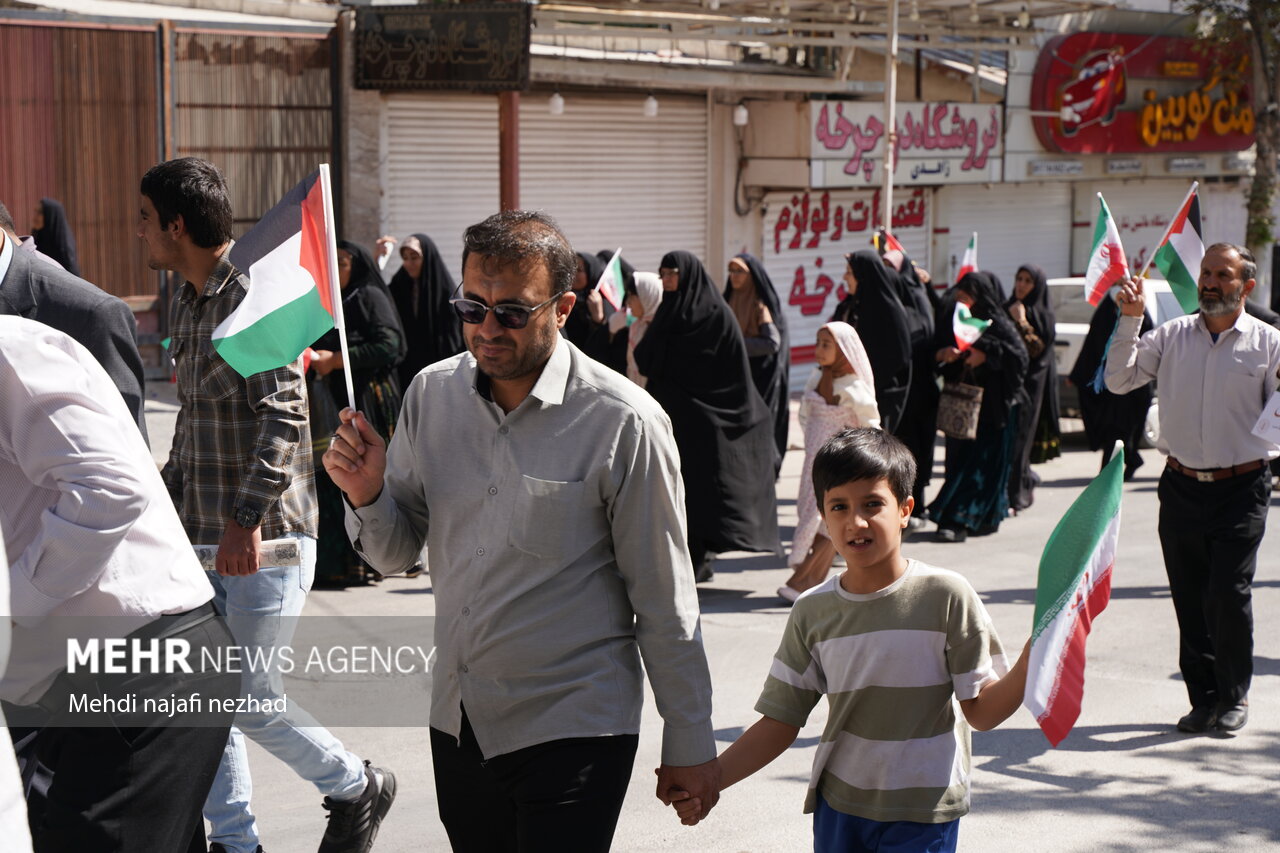 راهپیمایی بشارت نصر همراه با سراسر کشور در شهر یاسوج بعد از نماز جمعه برگزار شد.