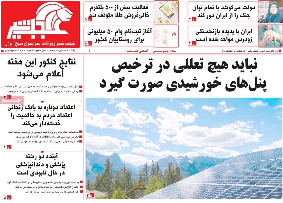 صفحه نخست روزنامه‌های آذربایجان شرقی ۲۰ مهر ۱۴۰۴