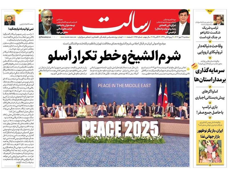 معجزه مقاومت، دلقک کذاب، معجزه غزه، چرا ایران به شرم الشیخ نرفت، دست رد به رویا فروشان، نه به بازنده، هرزه گویی کفتارها و...از جمله تیترهای روزنامههای سهشنبه ۲۲ مهر هستند.