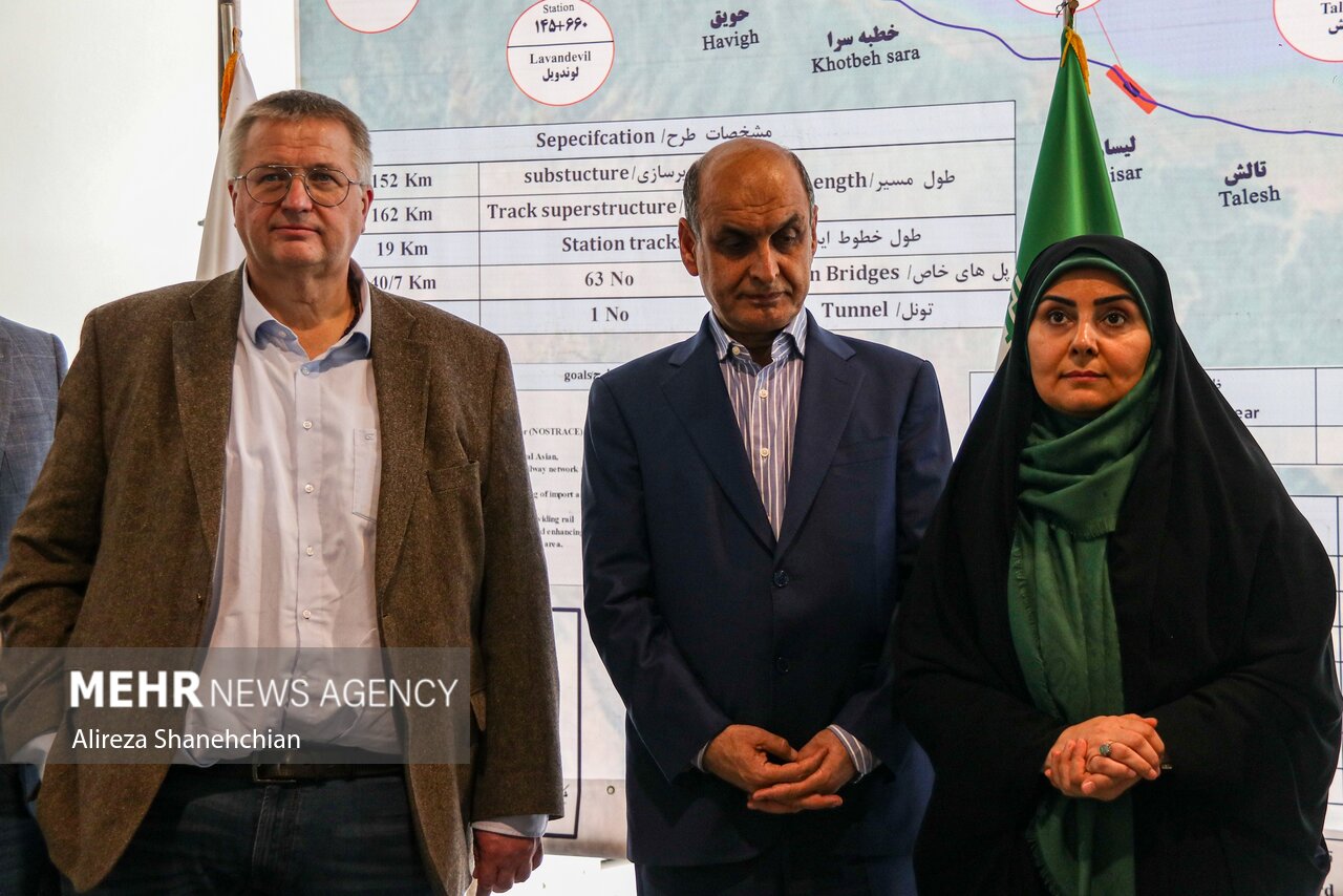 فرزانه صادق وزیر راه و شهرسازی و رئیس کمیسیون مشترک همکاریهای اقتصادی ایران و آذربایجان به همراه الکسی اورچوک معاون نخست وزیر روسیه و شاهین مصطفییف معاون نخست وزیر آذربایجان، از پروژه راه آهن رشت- آستارا بازدید کردند.