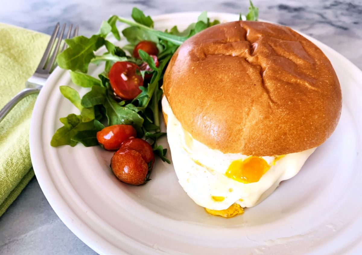 سپس لایه رویی ساندویچ را روی نان برگر فیکس کنید. در ادامه با طرز تهیه ساندویچ تخممرغ با نان برگر آشنا خواهیم شد.