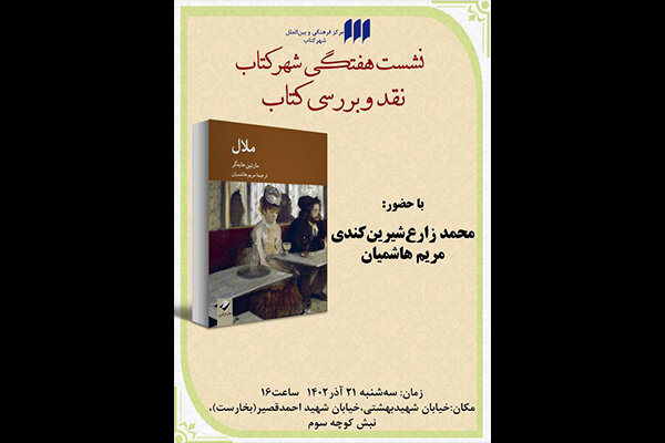 به گزارش خبرگزاری مهر، نشست نقد و بررسی کتاب «ملال» سهشنبه ۲۱ آذر در مرکز فرهنگی شهر کتاب برگزار میشود.