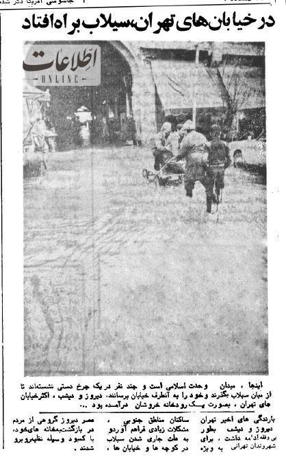 ۱۸ آذر ۱۳۶۲ تهران یک روز پربارش را تجربه کرد. نماز جمعه تهران به امامت آیت الله موسوی اردبیلی زیر باران شدید برگزار شد و شدت باران، آب گرفتگی بسیاری از معابر را به دنبال داشت. روزنامه اطلاعات ۱۹ آذر این روز بارانی را در عکسهای خود بازتاب داد. عکسهای روزنامه اطلاعات از نماز جمعه و میدان شهدای هفتم تیر در این روز بارانی را تماشا کنید.
